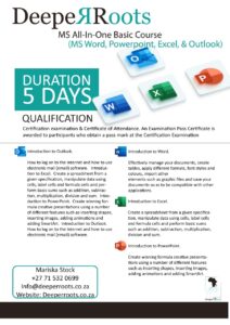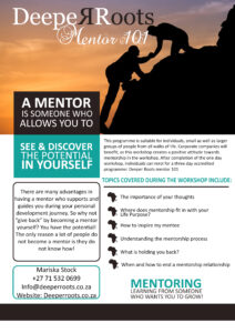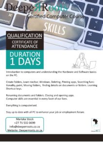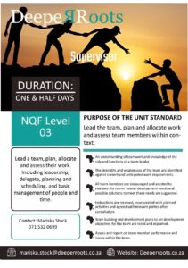 For further information on these courses please email -Mariska.Stock@deeperroots.co.za